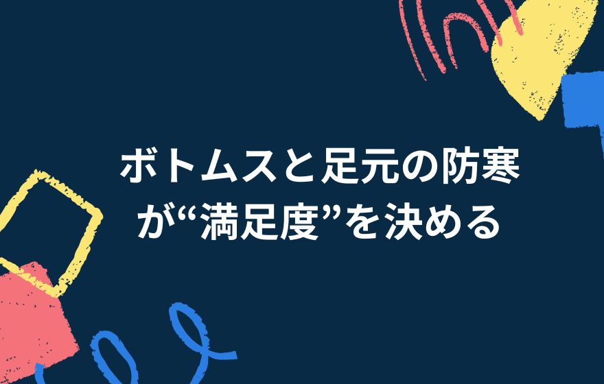 • 足首・足元:厚手ソックス、タイツ、レギンス